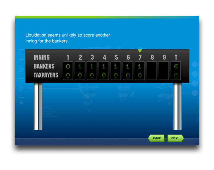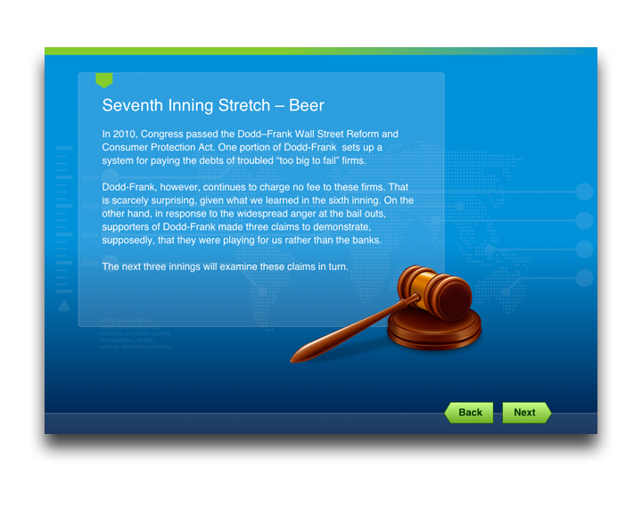 Interactive book supplement on big bank practices for faculty at New York Law School (programmed in house).